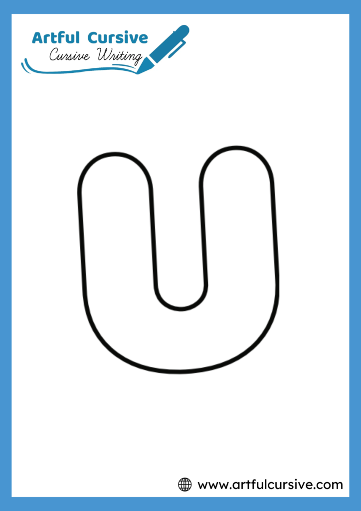 Print the Bubble Letter U worksheet for tracing, coloring, and creative projects. Its bold, rounded shape is ideal for children, classroom exercises, banners, and craft activities. Start practicing Bubble Letter U today!